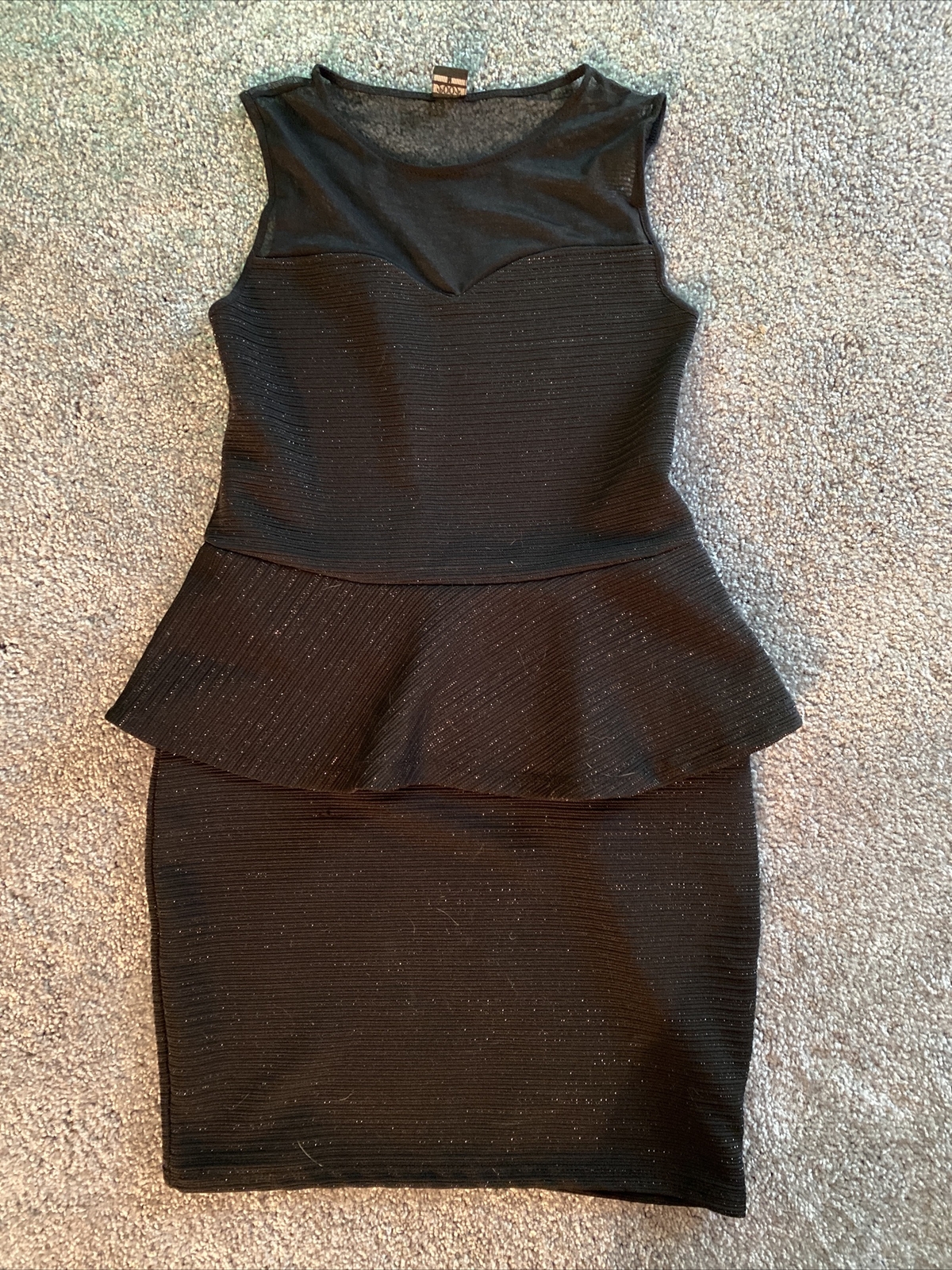 Poof Womens Black Mini Bodycon Mesh Dress See Through Accent Size Medium Sparkle Ebay